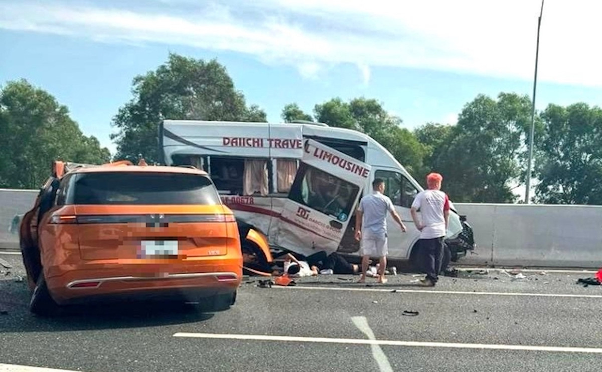 Sau đó, 3 người đàn ông trên 2 ô tô này đứng lại tranh luận về vụ việc ngay giữa đường cao tốc. Đúng lúc này, một xe con lao tới với tốc độ nhanh, tông mạnh vào đuôi xe 16 chỗ và nhóm người tranh luận, dẫn tới vụ tai nạn thảm khốc.