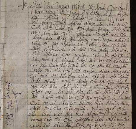 | Một phần nội dung "Lá thư tuyệt mệnh" của Hưng để lại |