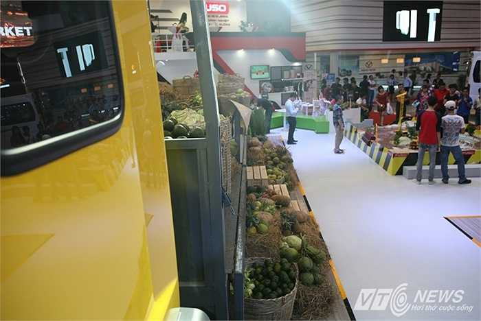 Lần đầu tiên, những hình ảnh rất nông thôn Việt Nam với khóm lúa, rơm rạ, nón lá và hàng chục loại nông sản được đưa vào triển lãm ô tô, tạo ấn tượng đặc biệt với người xem.