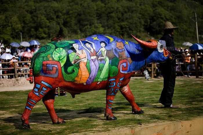 Hàng năm cứ vào ngày 18/5, người dân tại thị trấn Dương Thành (Quảng Đông, Trung Quốc) lại tưng bừng tổ chức cuộc thi vẽ nghệ thuật trên… thân trâu.