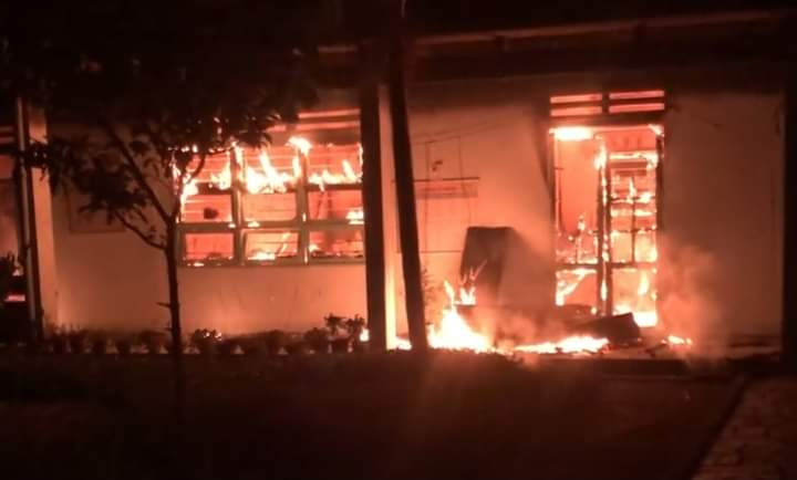 3 phòng của ngôi trường ở Quảng Nam bốc cháy trong đêm. (Ảnh: Đ.H)