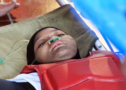 Một cú đá vòng trúng sau đầu của đối phương khiến Rafidah Bakri – võ sĩ người Malaysia – gục ngay xuống sân. Cáng lập tức được vào thảm đấu để đưa Bakri ra ngoài thở bình ô xi. Bakri lịm người đi khi các nhân viên ý tế đưa ống thở vào mũi. Phải rất lâu sau, cô mới hết choáng song vẫn không thể đứng dậy nổi.