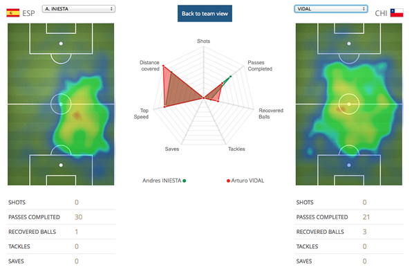 | Bản đồ nhiệt cho thấy các cầu thủ Chile đã thi đấu với một quyết tâm như thế nào. |