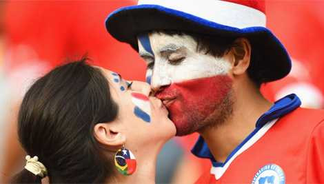 | CĐV Chile ăn mừng bằng một nụ hôn |