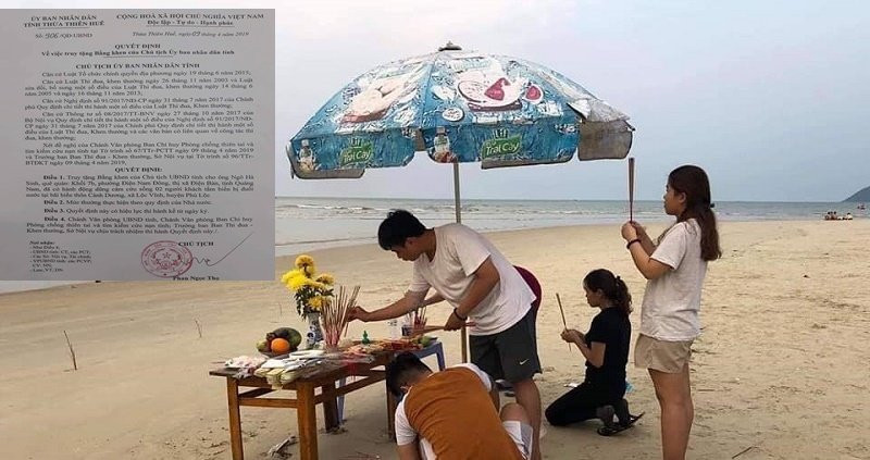 Ngày 10/4, ông Phan Ngọc Thọ, Chủ tịch UBND UBND tỉnh Thừa Thiên - Huế ký quyết định truy tặng bằng khen và thưởng cho anh Ngô Hà Sinh (SN 1997, trú thị xã Điện Bàn, tỉnh Quảng Nam).