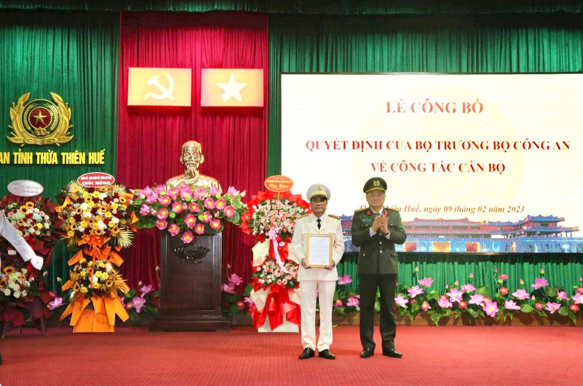 Ngày 9/2, Công an tỉnh Thừa Thiên Huế tổ chức lễ công bố quyết định của Bộ trưởng Bộ Công an về việc bổ nhiệm Thượng tá Hồ Xuân Phương - Trưởng phòng Tổ chức cán bộ, giữ chức vụ Phó Giám đốc Công an tỉnh.