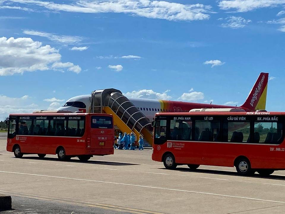 Chiều 26/7, chuyến bay ký hiệu VJ302 của Vietjet chở 239 công dân tỉnh Thừa Thiên - Huế từ TP.HCM hạ cánh xuống Cảng Hàng không Quốc tế Phú Bài. Đây là những công dân được về quê tránh dịch đợt 1 do tỉnh Thừa Thiên - Huế tổ chức.