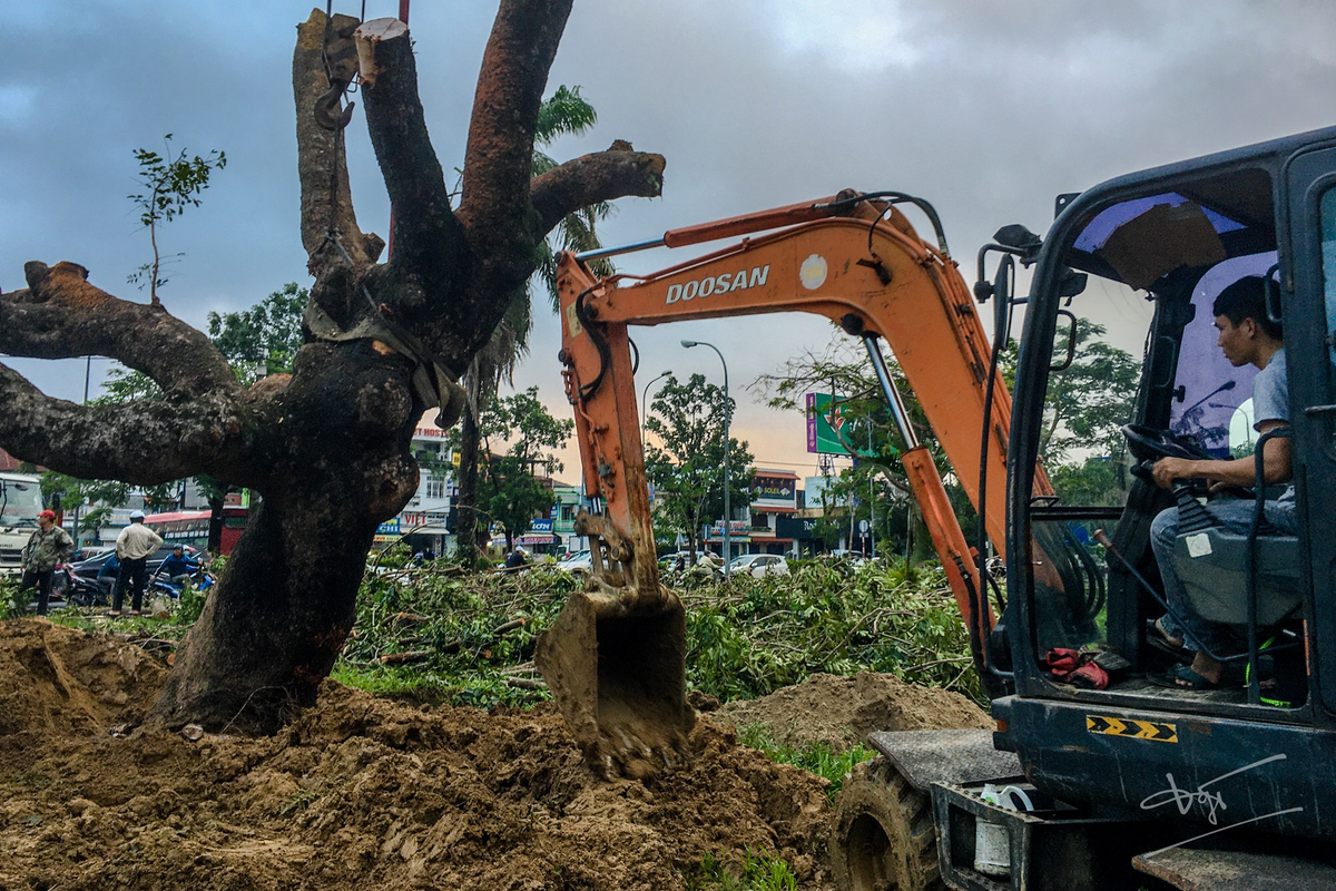 Cùng với việc trồng lại cây ở vị trí mới, các công nhân của Trung tâm Công viên cây xanh Huế cũng bôi thuốc vào các điểm thân, cành bị cắt để chống thối rửa và nhiễm trùng. Các kỹ thuật viên chăm sóc cây cũng làm các biện pháp kỹ thuật ở hố rễ để đảm bảo cây có thể phát triển.