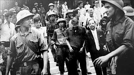 Tổng thống Dương Văn Minh đọc xong tuyên bố đầu hàng, Đại úy Phạm Xuân Thệ áp giải ông ta về dinh Độc Lập, bàn giao cho Bộ Tư lệnh Quân đoàn 2.