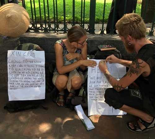 Hôm nay (19/5), hình ảnh về 2 du khách nước ngoài viết thông báo bị mất tài sản được chụp trước cổng Văn Miếu Quốc Tử Giám (phường Điện Biên, quận Ba Đình, Hà Nội) đã lan truyền nhanh chóng trên mạng xã hội. Nhiều người đã ngỏ ý tìm hiểu thông tin để giúp đỡ hai du khách kém may mắn này.
