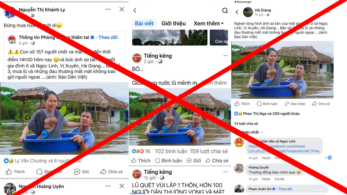 Mới đây, trên các trang mạng xã hội xuất hiện hình ảnh người đàn ông đang dầm mình trong nước lũ, cố gắng giữ chiếc chậu nhựa trong đó có vợ và con thơ. Kèm theo hình ảnh này là dòng tiêu đề: "Nghẹn lòng hình ảnh sơ tán của một gia đình ở xã Ngọc Linh, Vị Xuyên, Hà Giang... Bão số 3, mưa lũ và những đau thương mất mát không bao giờ nguôi ngoai…."