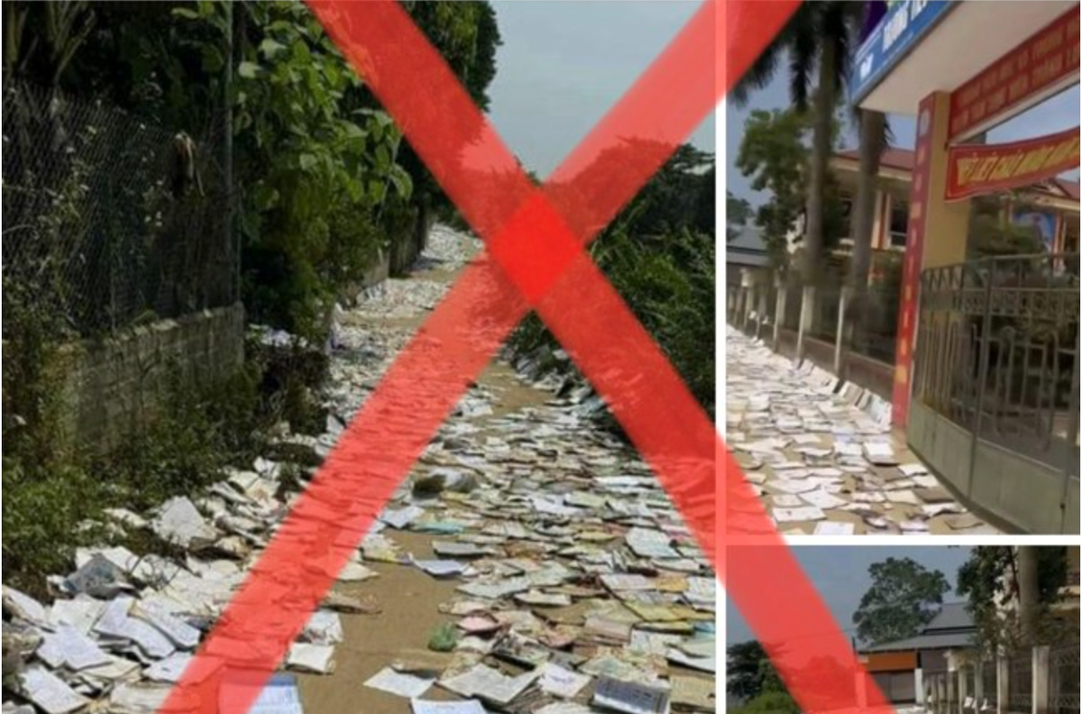 Trong trận mưa do hoàn lưu bão số 3, kho chứa giấy vụn của gia đình này bị ngập. Hình ảnh đang lan truyền trên mạng xã hội là số lượng giấy vụn được hộ gia đình này thu mua từ các nơi bị ướt trong kho mang ra phơi ngày 15/9. Có người đi qua đã chụp được hình ảnh này đưa lên mạng xã hội gây hiểu nhầm là sách vở của học sinh nhà trường.