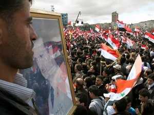 | Tuần hành ủng hộ chính phủ Syria tại Damascus ngày 15/3. (Nguồn: THX/TTXVN) |