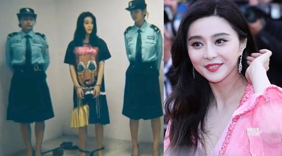 Cô đứng giữa và bên cạnh là hai nữ cảnh sát. Địa điểm được cho là tại phòng giam. Những hình ảnh này được lan truyền và gây hoang mang trên mạng xã hội Trung Quốc.