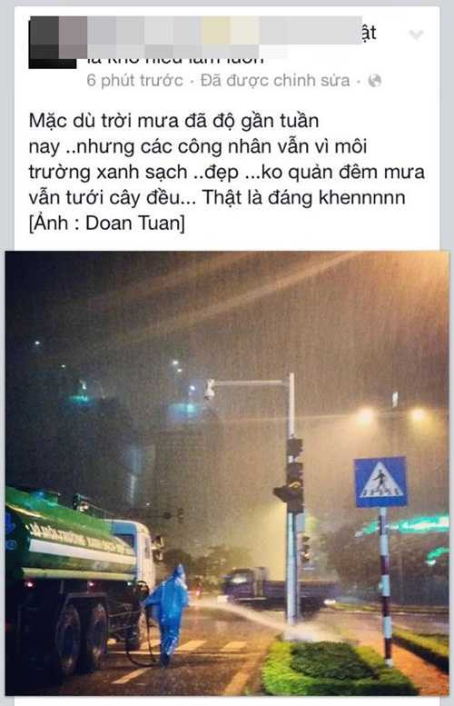 "Tại sao trời mưa mà công nhân vẫn tưới cây, lượng nước mưa chưa đủ hay sao?" một người dân thắc mắc sau khi theo dõi bức ảnh.