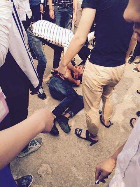 | Hình ảnh một nam sinh bị đâm gục ngay trong trường học gây xôn xao dư luận. |