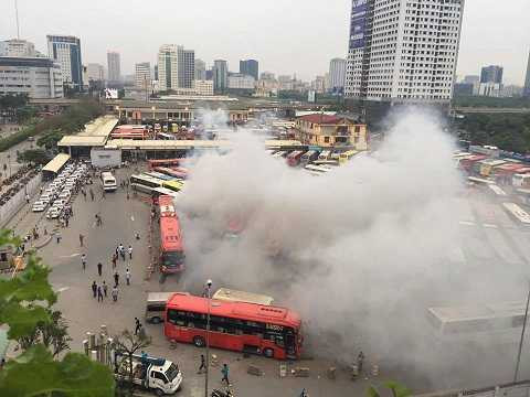 Theo lời ông Tuấn cột khói bốc ra từ một chiếc xe khách chạy tuyến Hà Nội - Vinh, đang được nhà xe làm lại máy chứ không phải là cháy. Mọi hoạt động trong bến xe vẫn diễn ra bình thường, không có bất cứ vụ cháy nào xảy ra vào chiều nay.