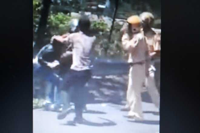 Hai đối tượng nhiều lần đạp về phía lực lượng chức năng.