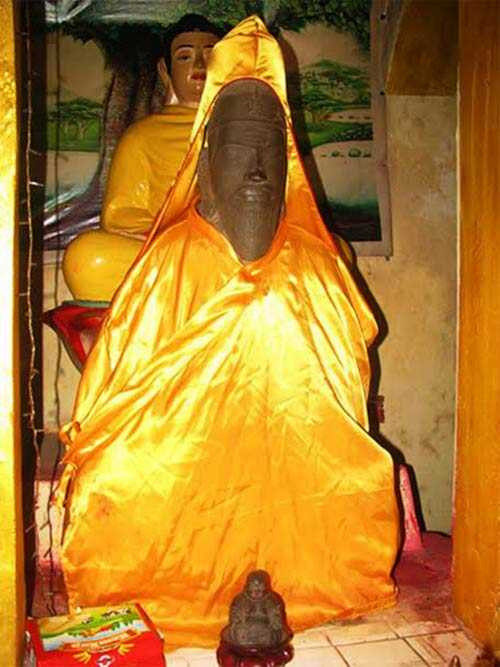 "Thế là bỗng nhiên hàng chục người dân chúng tôi thoát chết. Sau đó ít ngày, quân địch đến bốc bức tượng Phật Lồi này để mang ra biển vứt bỏ. Nhưng lạ thay, chân tượng dù không được gắn bằng xi măng cốt thép nhưng hàng chục tên địch cố nhấc lên mà nhấc mãi không được. Chúng điên tiết dùng búa để đập phá nhưng đập cỡ nào tượng cũng không hề sứt mẻ chút nào. Ngược lại mấy ngày sau, những tên địch quậy phá đó ngã bệnh và chết tức tưởi, bác sỹ cũng không tìm ra được nguyên nhân”.