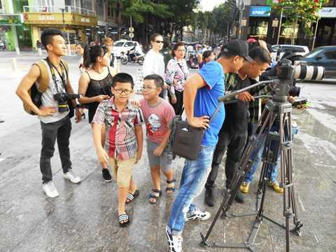 | Các đoàn làm phim đến phố đi bộ Nguyễn Huệ tác nghiệp. Ảnh: Phan Cường |