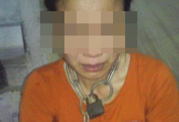 Người vợ bị chồng xích cổ lan truyền trên mạng xã hội. (Nguồn: FB)