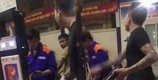 Tài xế bạt tai nhân viên cây xăng trên đường Trần Cung, Hà Nội vì nghi người này gian lận khi đổ 56 lít xăng cho bình xăng 50 lít.
