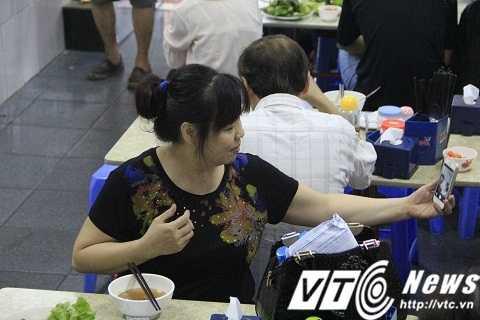 | Các vị khách cũng ghi lại những hình ảnh để làm kỉ niệm cùng "bún chả Obama" |