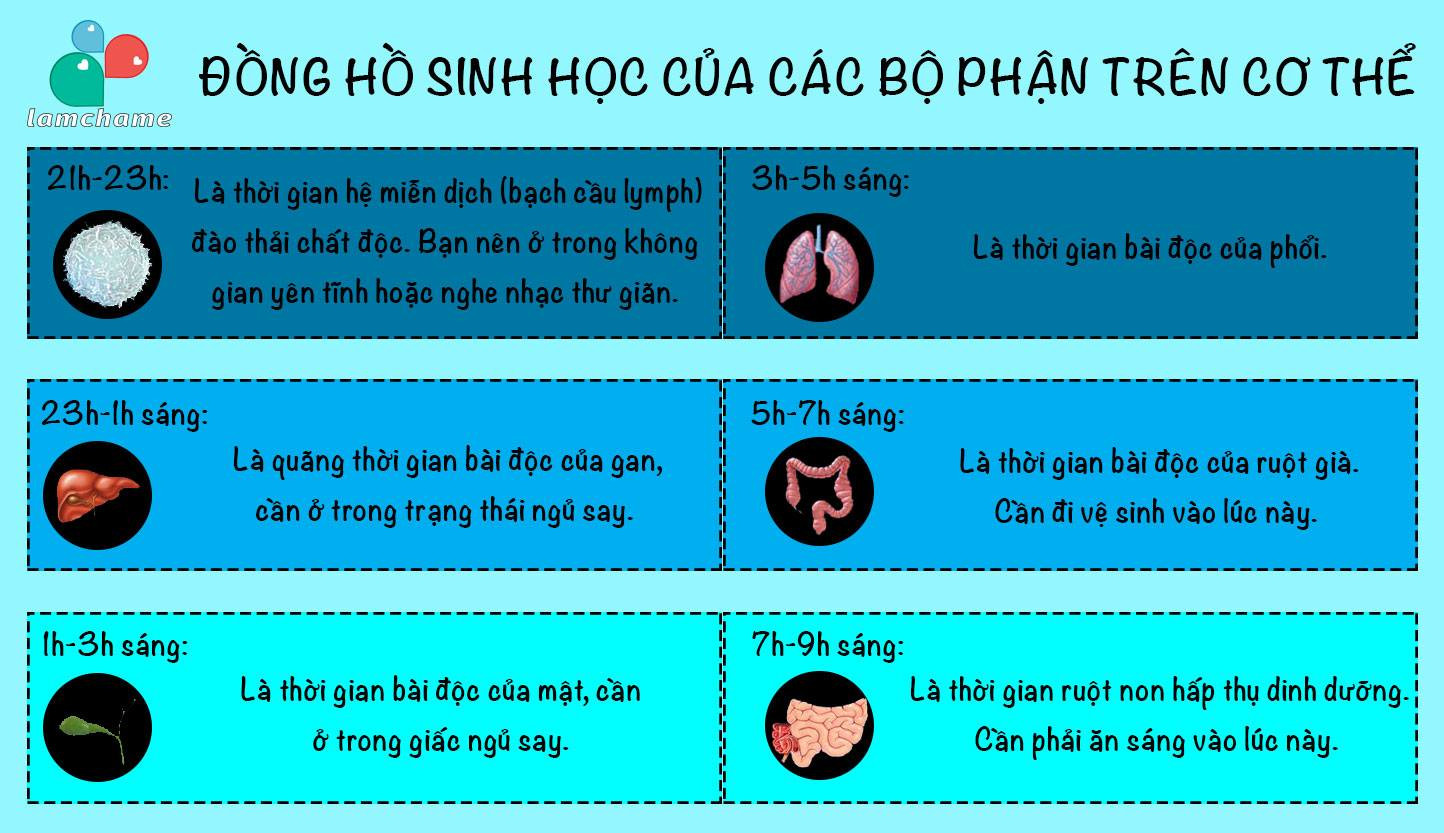 Bác sĩ cũng nhấn mạnh rằng, các cơ quan nội tạng trong cơ thể sẽ hoạt động để tự phục hồi từ 21h - 5h sáng. Và khoảng 23h - 3h sáng là thời gian quan trọng nhất để chúng ta chìm vào giấc ngủ say.