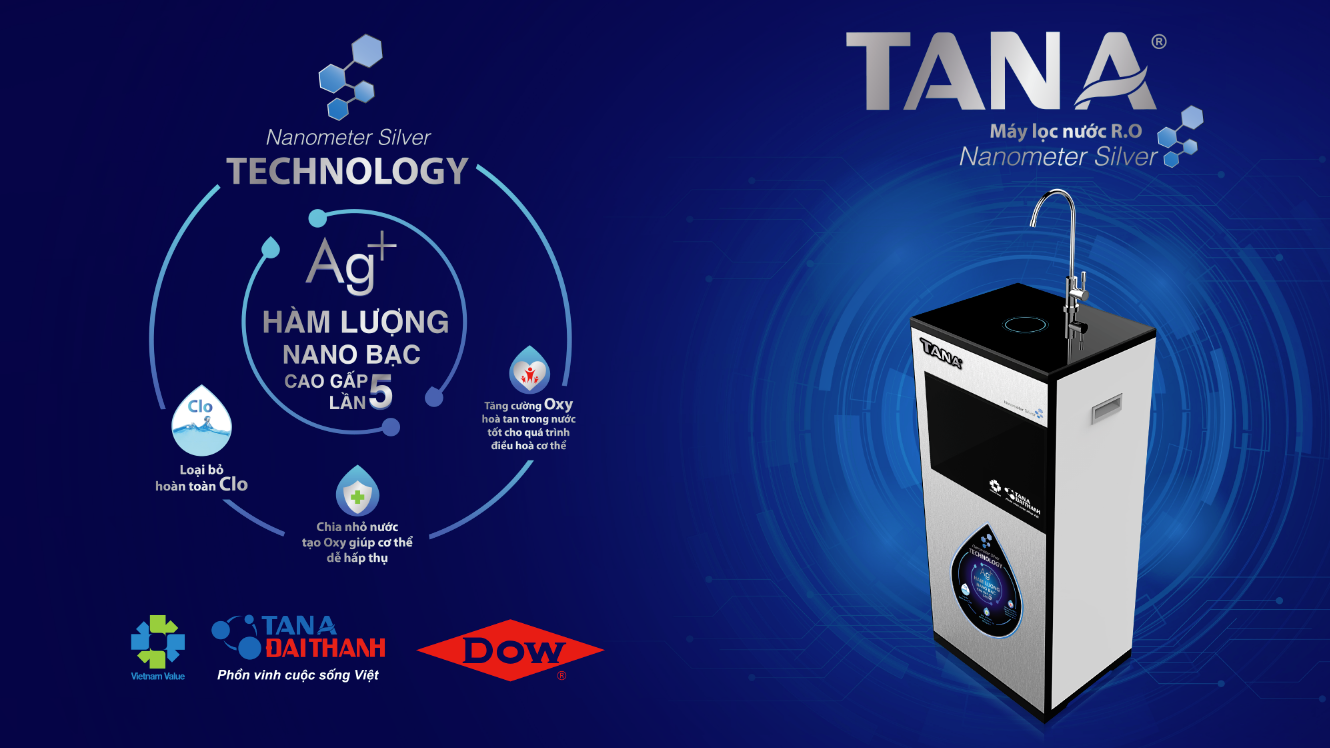 Năm 2017, Tập đoàn Tân Á Đại Thành hợp tác với Dow Water & Process Solutions (Tập đoàn Dow - Mỹ) để phát triển các dòng sản phẩm Máy lọc nước R.O cao cấp tại thị trường Việt Nam. Với tiêu chí mang đến nguồn “nước sạch, khoáng lành”, an toàn cho mọi gia đình Việt, Tân Á Đại Thành đã cho ra mắt dòng sản phẩm Máy lọc nước R.O Tân Á Nanometer Silver mới với hàm lượng Nano Bạc cao gấp 5 lần giúp loại bỏ hoàn toàn Clo, chia nhỏ nước tạo Oxy giúp cơ thể dễ hấp thụ và tăng cường Oxy hòa tan trong nước nên rất tốt cho quá trình điều hòa cơ thể.