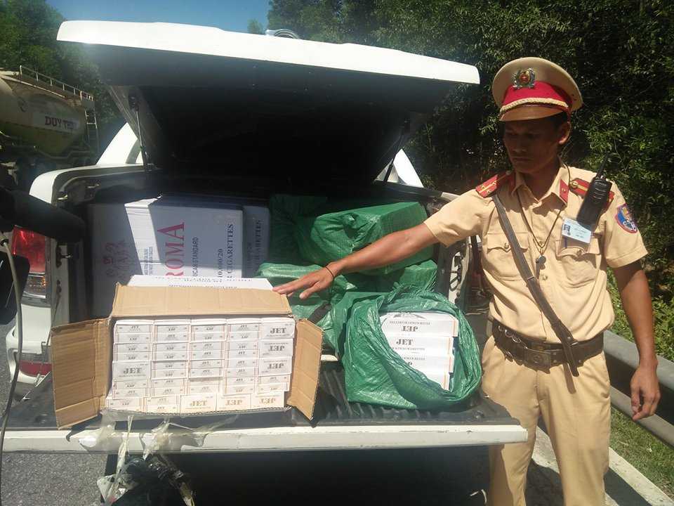 Đội Tuần tra kiểm soát số 1 Phòng CSGT Đường bộ - Đường sắt Công an tỉnh Thừa Thiên - Huế phát hiện một đối tượng vận chuyển số lượng lớn thuốc lá lậu bằng xe ô tô bán tải.