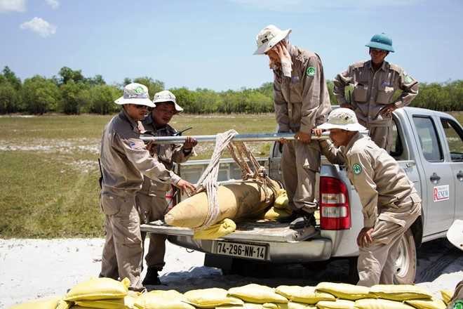 3 quả bom do nhóm người trên mang đi bán đã được các nhân viên dự án Renew đưa về bãi huỷ nổ an toàn.