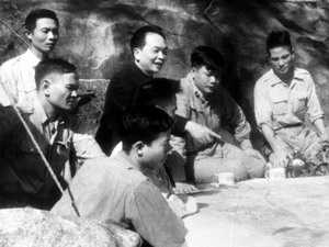 | Bộ chỉ huy Chiến dịch Điện Biên Phủ dưới sự chỉ đạo trực tiếp của Đại tướng Võ Nguyên Giáp đang bàn kế hoạch tác chiến từng trận đánh. (Ảnh: Tư liệu/TTXVN) |