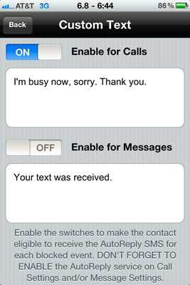 Thêm vào đó iBlacklist còn cũng cấp tính năng báo bận khi có cuộc gọi đến. Nếu số điện thoại trong danh sách chặn gọi điện vào máy người dùng sẽ nhận được thông báo: Máy bận hoặc ngoài vùng phủ sóng ...