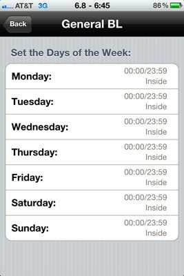 iBlacklist cũng cho phép người dùng hẹn giờ kích hoạt các tính năng chặn trong ngày hoặc tuần: