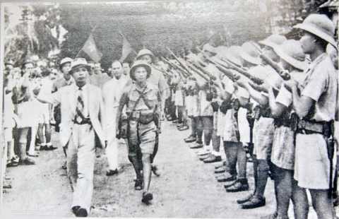 | Tư lệnh Việt Nam Giải phóng quân Võ Nguyên Giáp duyệt binh lần đầu tiên ở Hà Nội ngày 26/8/1945 sau khi giành được chính quyền. |