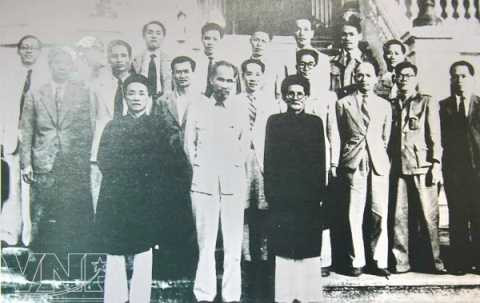| Chính phủ nước Việt Nam Dân chủ Cộng hòa do Quốc hội thành lập sau Tổng tuyển cử 6/1/1946 (Đại tướng Võ Nguyên Giáp đứng hàng thứ 2, ngoài cùng bên phải). |