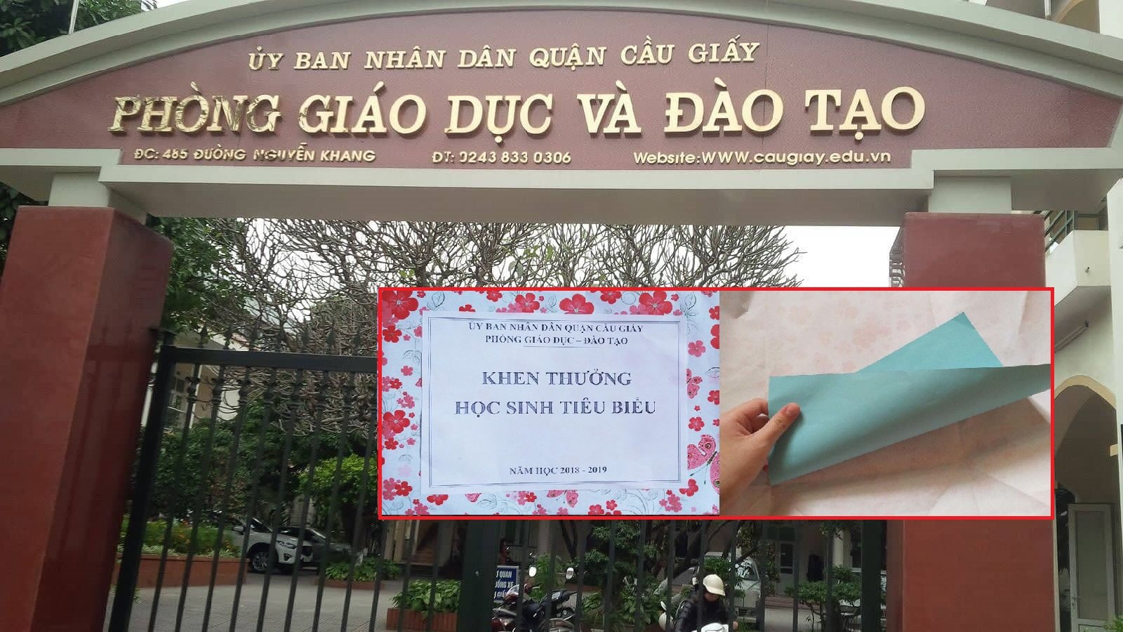 Trước đó, sự việc xảy ra khi một phụ huynh có con học tại một trường cấp 2 quận Cầu Giấy, Hà Nội phản ánh rằng con mình sau khi đi dự lễ tuyên dương, khen thưởng học sinh giỏi tiêu biểu năm học 2018-2019 của quận nhận phần thưởng được gói đẹp, tuy nhiên bên trong chỉ thấy tờ giấy A4 màu xanh.