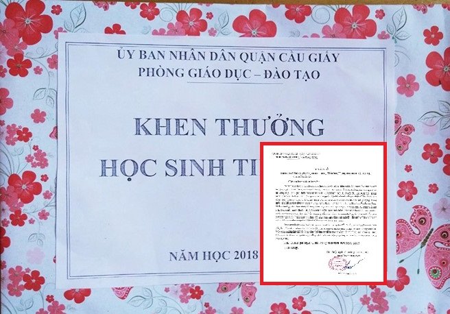 Trước đó, sự việc xảy ra khi một phụ huynh có con học tại một trường cấp 2 quận Cầu Giấy, Hà Nội phản ánh rằng con mình sau khi đi dự lễ tuyên dương, khen thưởng học sinh giỏi tiêu biểu năm học 2018-2019 của quận nhận phần thưởng được gói đẹp, tuy nhiên bên trong chỉ thấy tờ giấy A4 màu xanh.