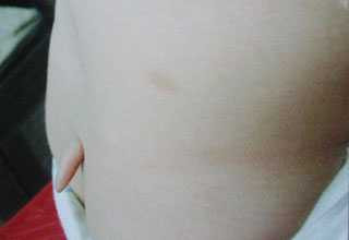 Mới chào đời, vùng xương cụt của bé gái xuất hiện một u thịt nhỏ nhú lên, sau hai năm phần thịt thừa này mọc dài hơn 2cm.
