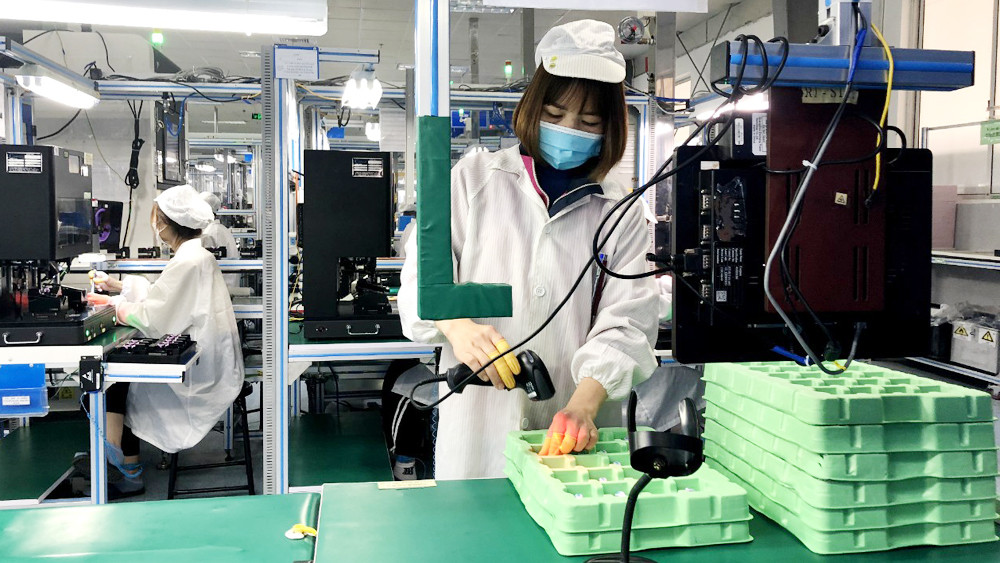 Dây chuyền sản xuất tại Công ty TNHH New wing (KCN Vân Trung). Đây là một trong những doanh nghiệp FDI nộp thuế cao trong năm 2023. (Ảnh: BBG)