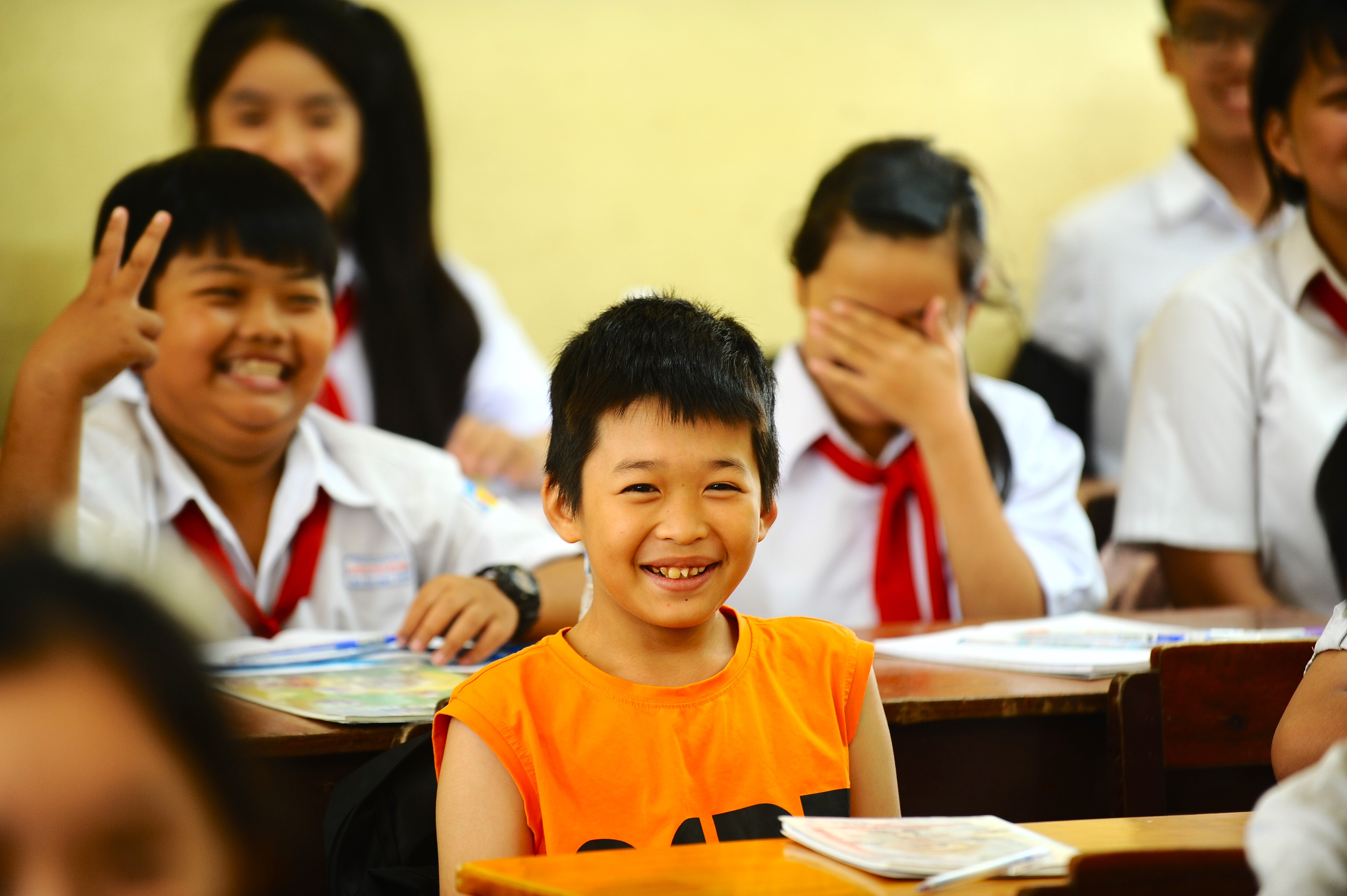 Nụ cười đã trở lại trên khuôn mặt của các em học sinh sau những ngày lũ dữ kinh hoàng.