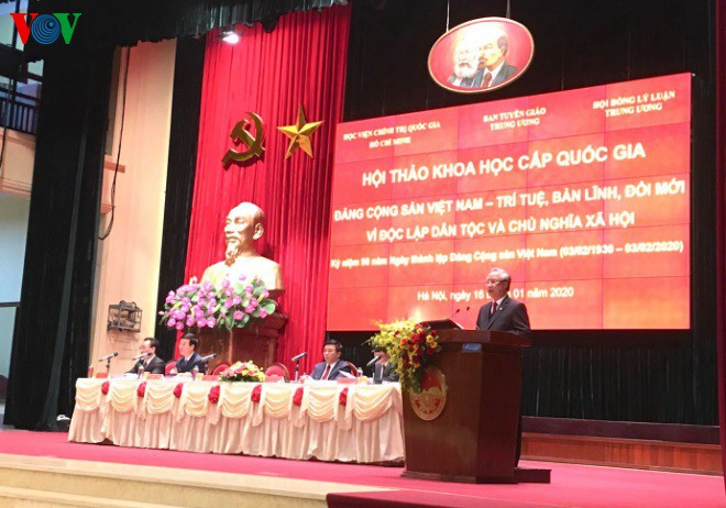 Hướng tới kỷ niệm 90 năm Ngày thành lập Đảng Cộng sản Việt Nam, sáng 16/1, tại Hà Nội, Ban Tuyên giáo Trung ương phối hợp với Học viện Chính trị Quốc gia Hồ Chí Minh, Hội đồng Lý luận Trung ương tổ chức Hội thảo khoa học cấp quốc gia với chủ đề “Đảng Cộng sản Việt Nam - trí tuệ, bản lĩnh, đổi mới vì độc lập tự do và chủ nghĩa xã hội”.
