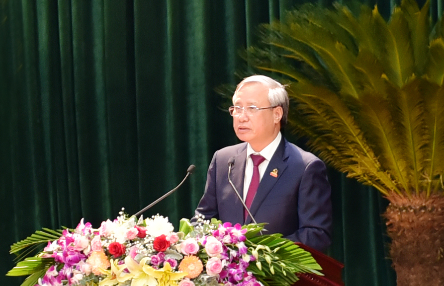 "Thay mặt Bộ Chính trị, Ban Bí thư, tôi nhiệt liệt chúc mừng, biểu dương những thành tựu quan trọng mà Đảng bộ, chính quyền và nhân dân tỉnh Ninh Bình đã đạt được trong nhiệm kỳ qua", ông Vượng nói.