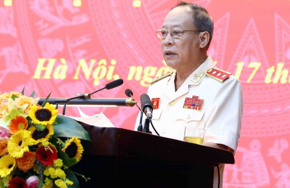 Thượng tướng Lê Quý Vương - Chủ tịch Hội Cựu Công an nhân dân Việt Nam phát biểu. (Ảnh: Trọng Phú).