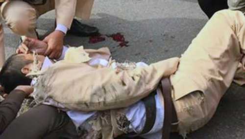 | Thượng úy Nguyễn Quốc Đạt thương nặng sau khi bị chiếc xe tải kéo lê trên đường. |