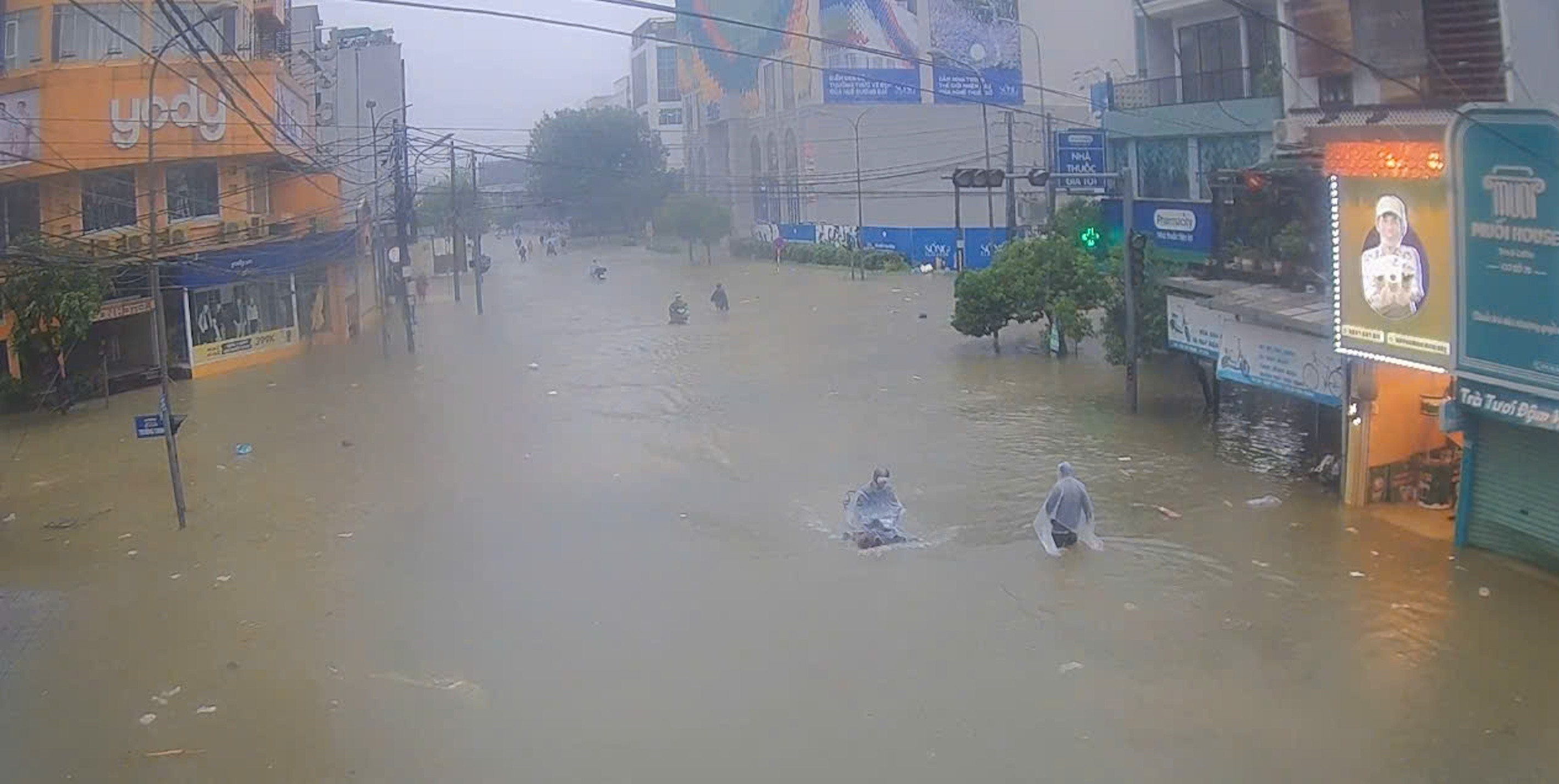 Khu vực đường Trường Chinh (phường Thuận Hoá, TP Huế) ngập sâu trong nước.