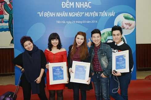 (VTC News) - Siêu mẫu Thanh Hằng, ca sỹ Thái Thùy Linh, Quỳnh Nga cùng nhiều nghệ sỹ đã mang tình yêu đến với bệnh nhân trong chuyến từ thiện tại bênh viện vùng biển của huyện Tiền Hải - Thái Bình. Siêu mẫu Thanh Hằng, ca sỹ Thái Thùy Linh, Hoa hậu biển Vân Anh, Nữ hoàng trang sức Lô Hương Trâm, Hoa hậu Du lịch Phan Hoàng Thu, Diễn viên Việt Anh, 'cá sấu chúa' Quỳnh Nga, Á hậu Phụ nữ Việt Nam qua ảnh Ngọc Hoa, ... cùng đông đảo các nghệ sỹ khác đã khiến nhà văn hóa địa phương chật kín 600 chỗ ngồi.