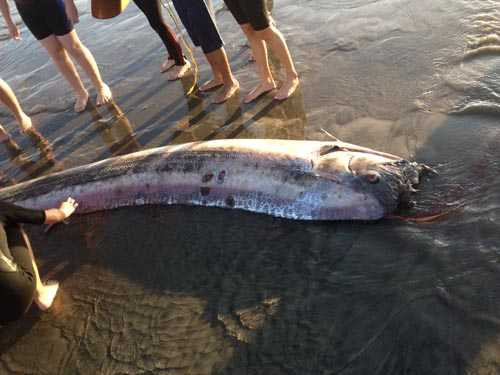 Cá mái chèo trôi dạt vào bờ biển California, Mỹ năm 2013. Ảnh: CNN.