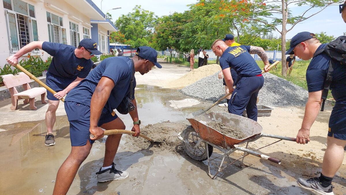Tại Trung tâm nuôi dạy trẻ em mồ côi Hoa Mai, các thủy thủ tàu sân bay USS Ronald Reagan của Hải quân Mỹ được trải nghiệm những công việc thú vị như trộn hồ, bê tông làm đường giúp trẻ em.