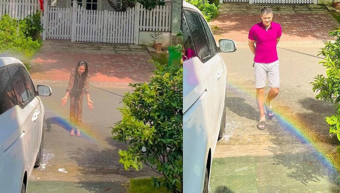 Thủy Tiên, Công Vinh thích thú chơi đùa với cầu vồng.